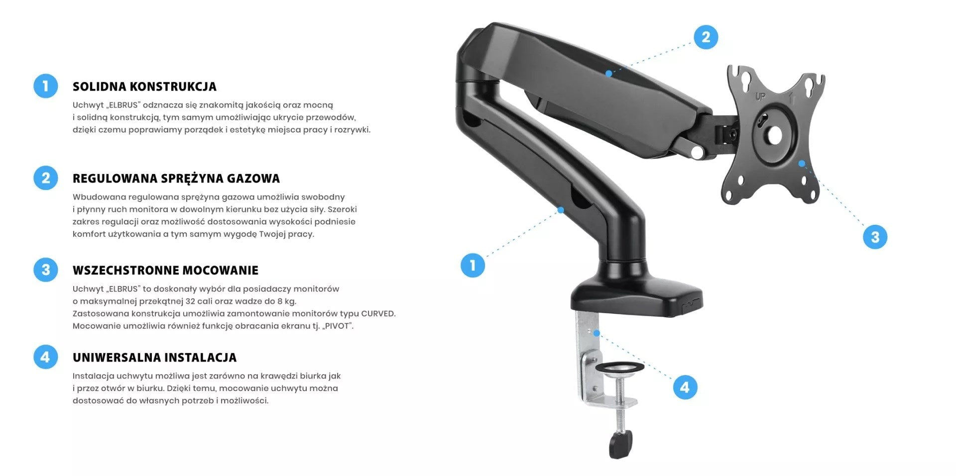 MONTIS UCHWYT DO MONITORA MT014 ELBRUS / CZARNY